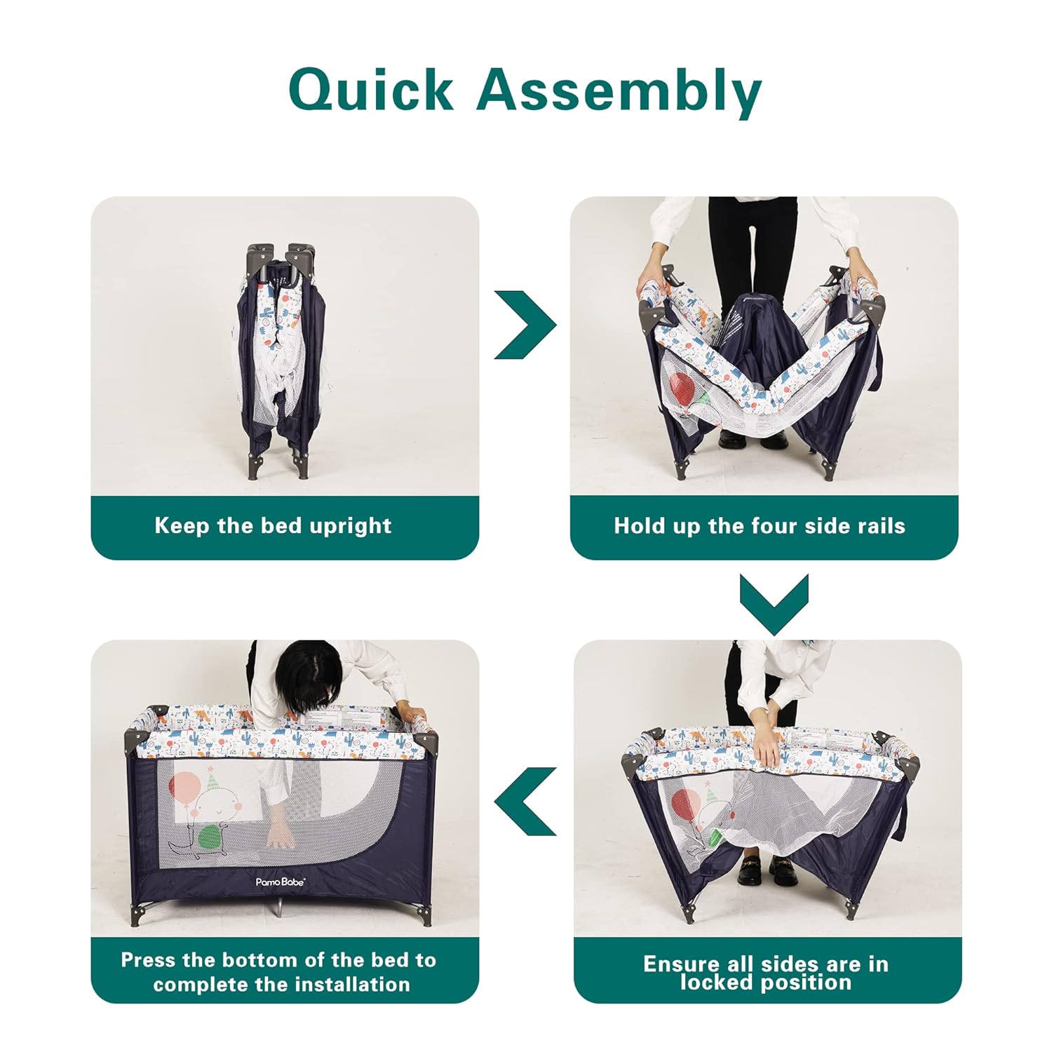 Pamo Babe Travel Foldable Portable Bassinet Baby Infant Comfortable Play Yard Crib Cot with Soft Mattress Breathable Mesh Walls, and Carry Bag Blue