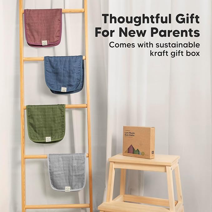 - Beautiful Neutral Palettes - The Lumi Muslin Burp Cloths are designed with gender neutral palettes for baby boys and girls. It is the perfect baby shower gift and baby registry gift for new parents. Comes with sustainable kraft gift box.