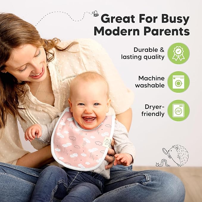 - Super Absorbent - Our organic baby boy and girl bibs are made with 100% organic cotton (GOTS-certified) and backed with water resistant fleece for added absorption. This dual layer design helps to keep your baby clean and fresh all day long. Suitable for newborns, infants, toddlers, heavy droolers and teething babies.