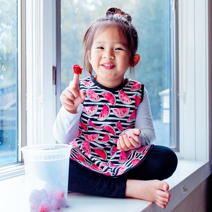 BapronBaby Watermelon Stripes Bapron - No Neck Tie Safer Bib for Baby & Toddler - Soft Waterproof Stain Resistant - Machine Washable - Sz Preschool 3-5yrs