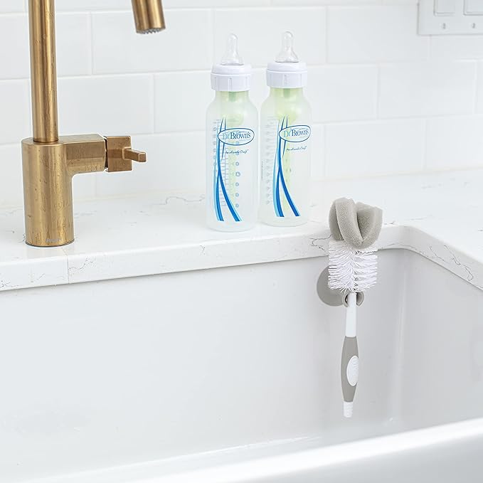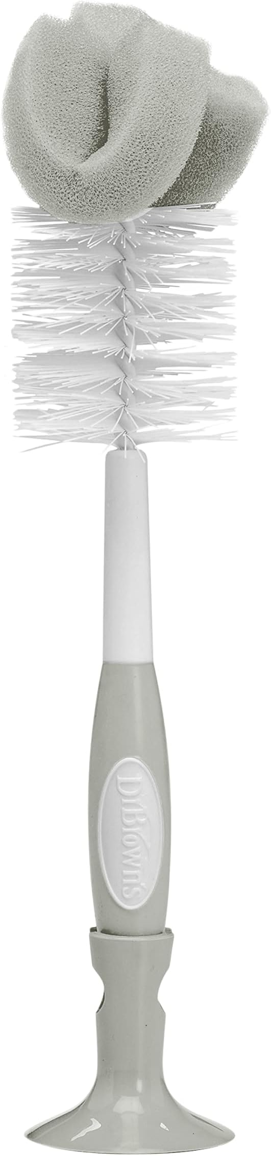 Dr. Brown's Baby Bottle Cleaning Brush with Sponge, Scrubber and Nipple Cleaner, Grey 1 Pack