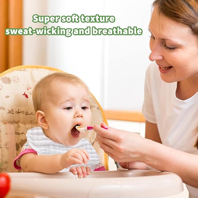 - Super absorbent and breathable bibs: This 360° petal-shaped baby bib is made of 8 layers of 100% organic Muslin cotton gauze for excellent absorbency and breathability. This scientific bib design ensures that baby's clothes are dry and clean, protects baby's tender skin, and solves the problem of drooling and other problems during the growth period. (Note: Due to the special nature of the material, it is only suitable for air drying, not for dryers, which may cause the bib to shrink.)