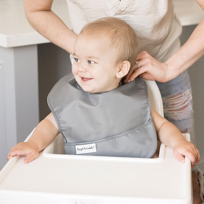 Tiny Twinkle Mess Proof Baby Bibs for Eating – Waterproof, Wipeable Toddler Bibs with Pocket – Baby Food Bibs for Girls & Boys(5 Pack,Unisex Solids)