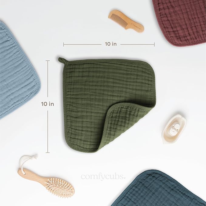 - Soft & Gentle Muslin Washcloths: Crafted from 100% premium muslin cotton, Comfy Cubs baby washcloth is specially designed for delicate, sensitive baby skin. Great for keeping your newborn clean and comfortable during bath time.
