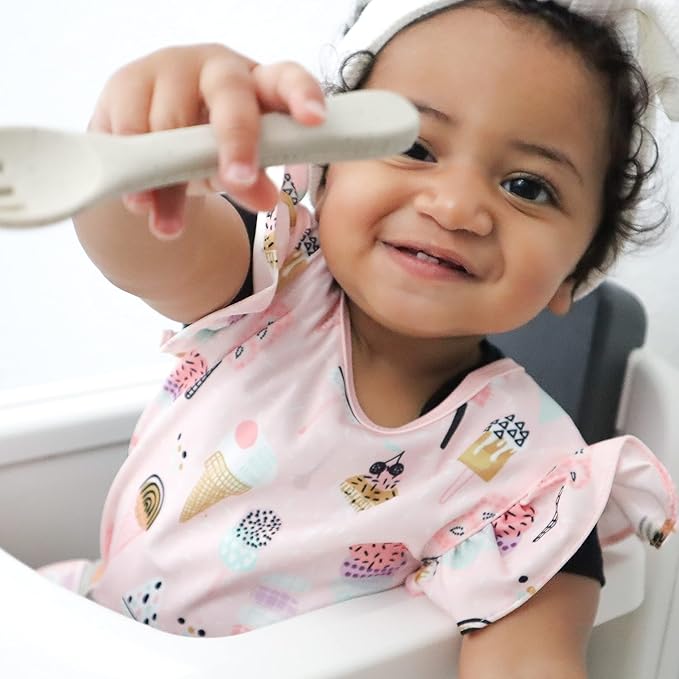 BapronBaby Flutter Pink Ice Cream Bapron - No Neck Tie Safer Bib for Baby & Toddler - Soft Waterproof Stain Resistant - Machine Washable - Sz Preschool 3-5yrs