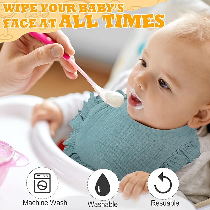 - Practical Gift for Baby: parent will love this muslin baby bibs, it not only keeps baby's skin dry, but also reduces the workload of new mothers, much easier than changing bibs with clothes; Therefore, taking this thoughtful gift as a baby shower, birthday, holiday gift, Christmas will be loved by many mothers