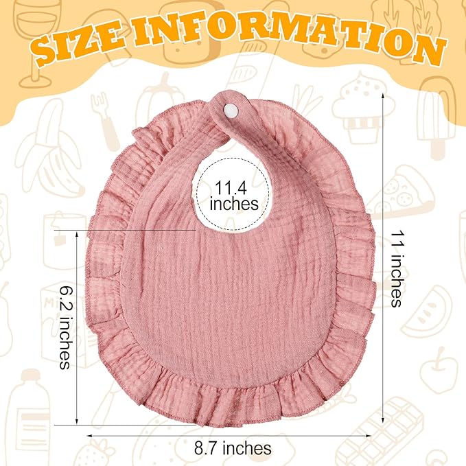 - Cute Ruffled Design: the muslin bandana bib is designed with a ruffled shape, the style is fresh and cute, there are solid colors and patterns, stylish and eye catching, letting your baby wear very beautifully; This bib can be matched with any style of clothing, very suitable for daily wear