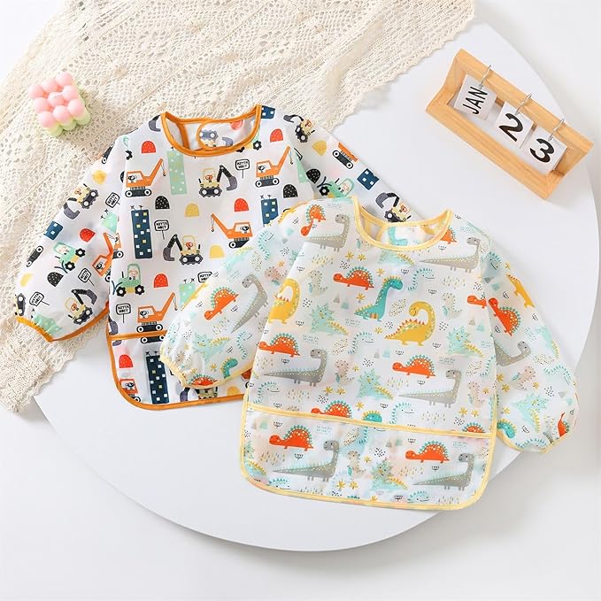 3 Pcs Waterproof Long Sleeves Baby Bibs Weaning Smock Bib 3-24 Months