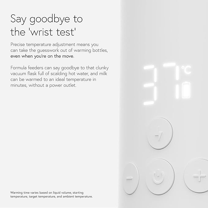 - SMART BABY BOTTLE WARMER: The hidden until lit display appears when turned on, allowing you to set precise temperature settings and auto sleeps when it senses that the travel bottle warmer is empty