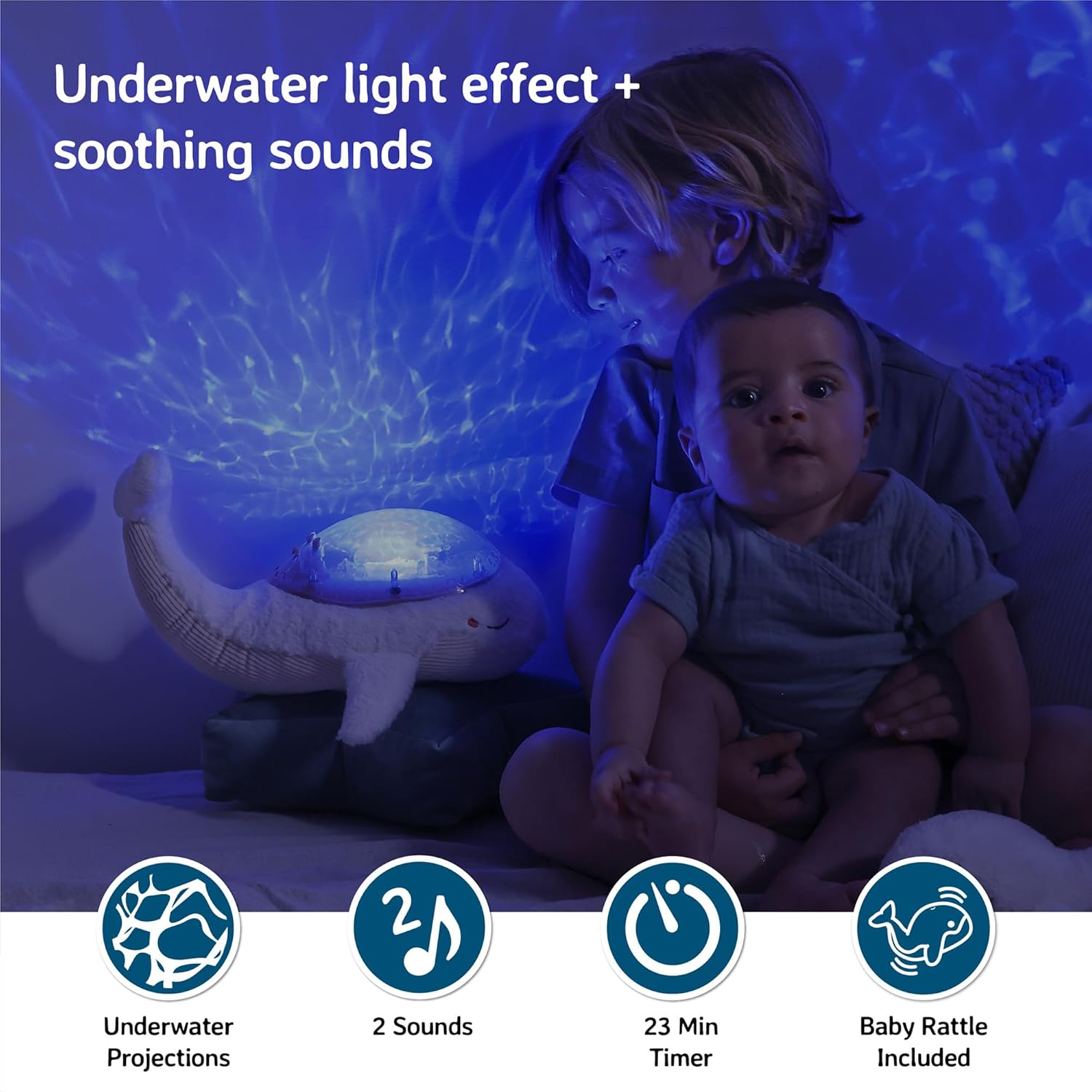 Cloud b Ocean Projector Nightlight with White Noise Soothing Sounds | Adjustable Settings and Auto-Shutoff | Tranquil Whale Family - White