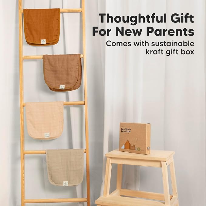 - Beautiful Neutral Palettes - The Lumi Muslin Burp Cloths are designed with gender neutral palettes for baby boys and girls. It is the perfect baby shower gift and baby registry gift for new parents. Comes with sustainable kraft gift box.