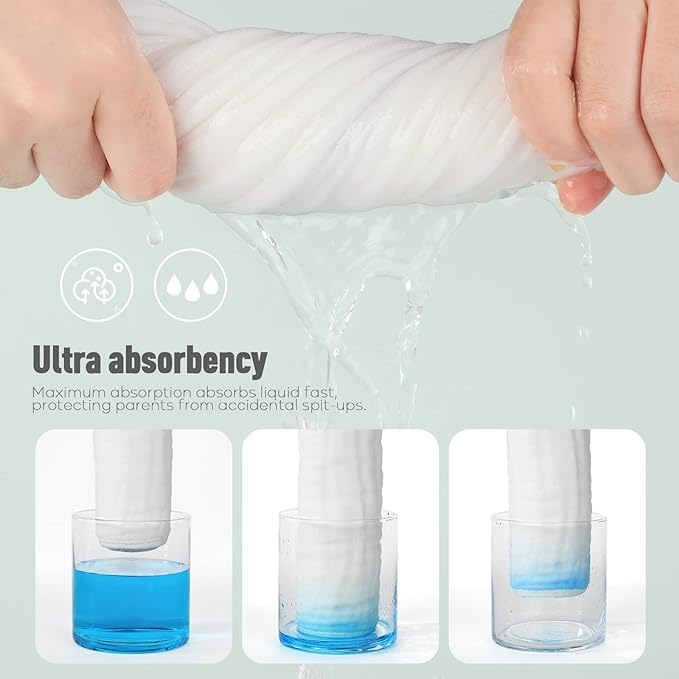 - SOFT AND ABSORBENT: The fluffy structure of muslin burp cloths provides a comfortable and breathable effect. Large 20''X10'' size provides maximum coverage, absorbs drools and spills in seconds, keeping cloths dry and comfy.