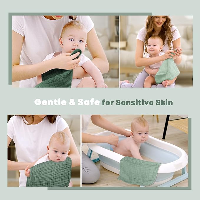Yoofoss Muslin Burp Cloths for Baby 10 Pack 100% Organic Cotton Baby Washcloths for Boys Girls Large 20''X10'' Super Soft and Absorbent Gradient Green