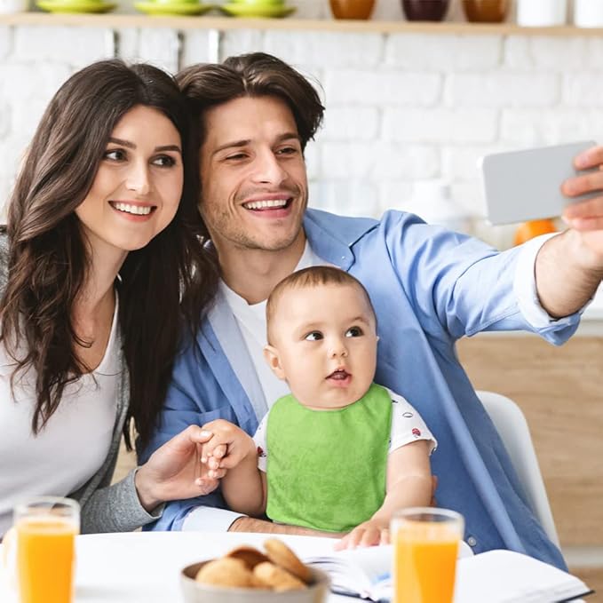 - Soft and Absorbent: The bibs are designed with solid terry cloth, the cotton polyester blend is soft and gentle, with maximum absorbency, gentle on your baby's skin. The baby drool bibs absorb all drool and saliva, keeping you and your baby clean and dry