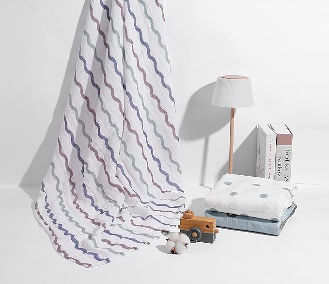 Muslin Baby Quilt 100% Cotton Newborn Blanket 47" X 47" 2 Layers Muslin Swaddle for Boy and Girl (Ocean Series)
