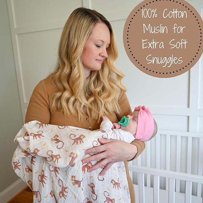 LollyBanks Muslin Swaddle Blankets, 100% Cotton Baby Swaddle Blanket for Boys and Girls, Large 47 x 47 Inches Newborn Swaddle, Soft and Breathable Baby Receiving Blankets, Registry (Monkey Print)