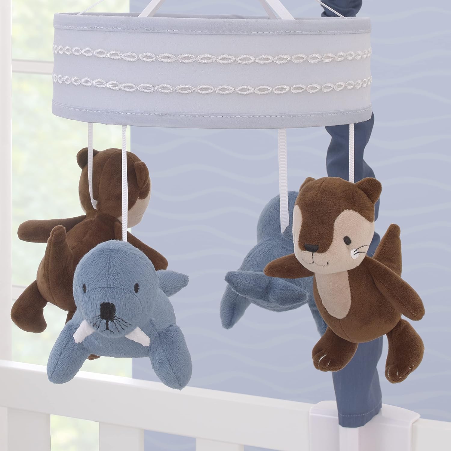- Features cute walrus and sea otters underneath a light blue canopy