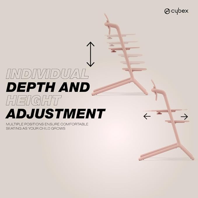 Cybex LEMO High Chair 3-in-1 Set with Baby Set + Snack Tray - Modern Design, One-Hand Depth & Height Adjustment & Anti-Tip Wheels - from 6 Months, Convertible to Adult Chair, Pearl Pink