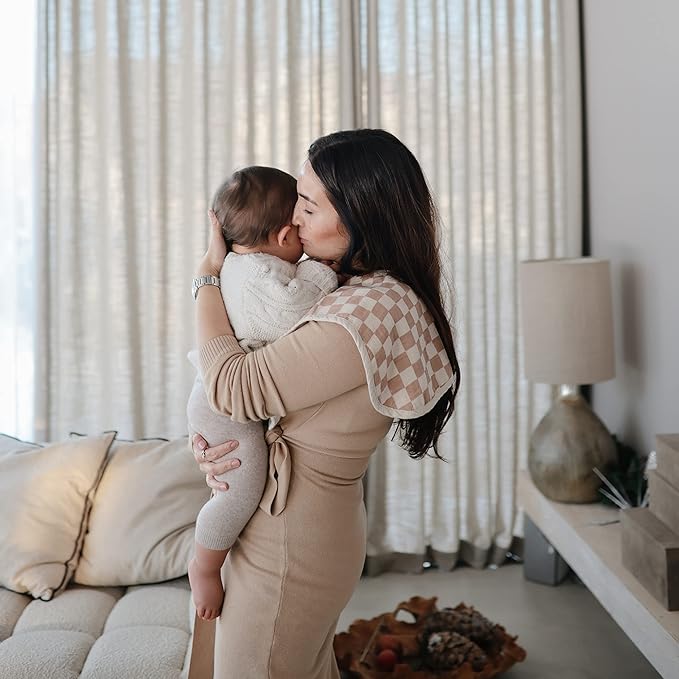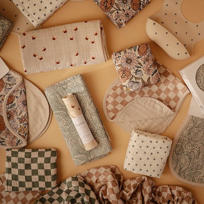 mushie Muslin Baby Burp Cloths | 100% Organic Cotton, Set of 2 (Olive Check/Natural Check)