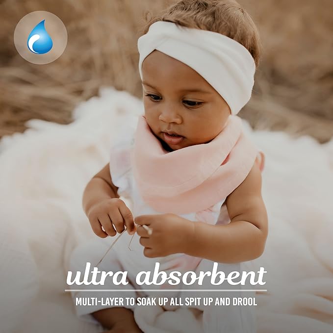 - SUPER ABSORBENT – Eight layers of muslin provide exceptional absorbency, soaking up drool and spills while keeping baby’s clothes dry and comfortable – helping reduce outfit changes and laundry for parents