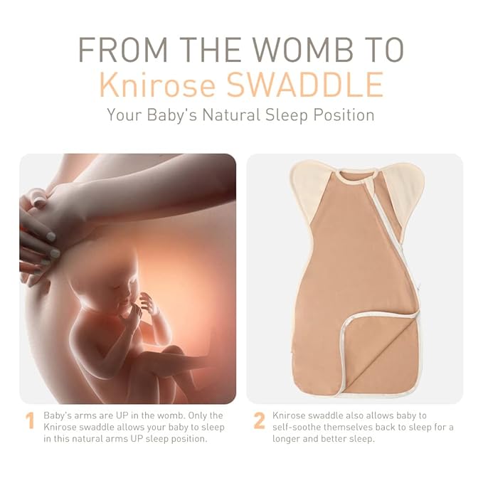 - Sleep as Babies’ Like - Over 90% of babies sleep with their ARMS UP around their head when placed on their back to sleep. This is simply a newborn baby’s natural and preferred way to sleep. Knirose swaddle with scientific Arms Up design allows baby to sleep with their arms in their preferred ARMS UP position and gives enough movement, all while calming down the Moro (startle) reflex.