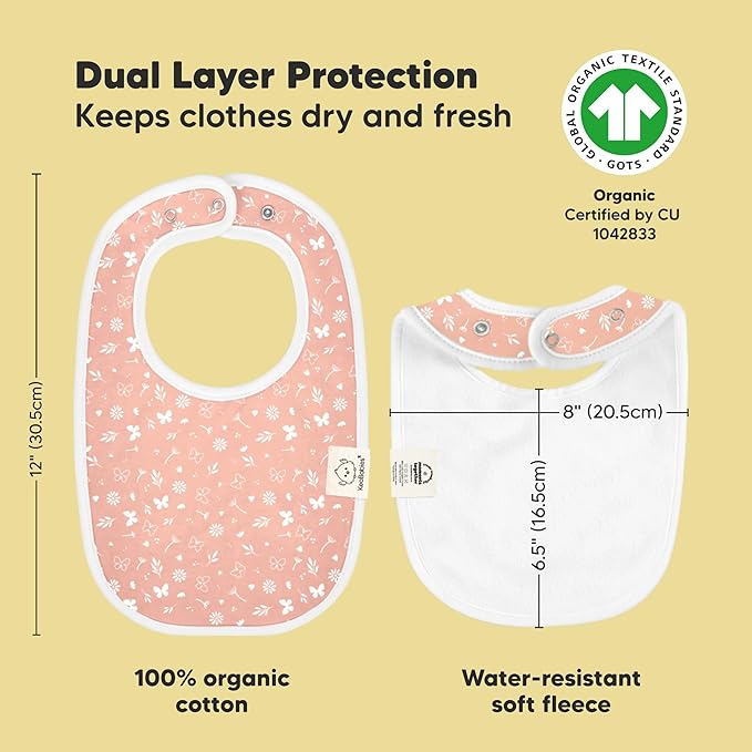 - Super Absorbent - Our organic baby boy and girl bibs are made with 100% organic cotton (GOTS-certified) and backed with water resistant fleece for added absorption. This dual layer design helps to keep your baby clean and fresh all day long. Suitable for newborns, infants, toddlers, heavy droolers and teething babies.