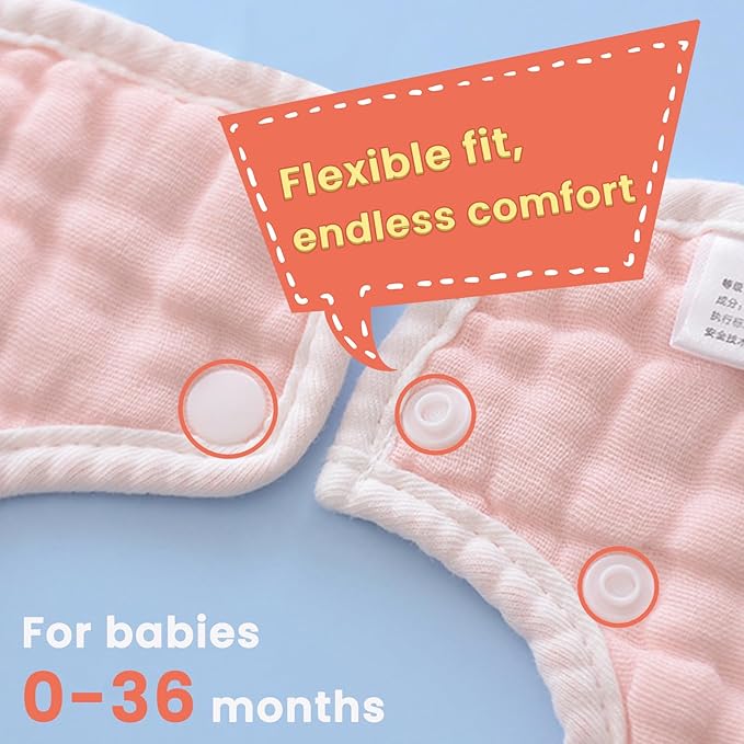 - Naturally Strong and Absorbent: Our Baby Bibs are made of natural Muslin organic cotton, which is known for its strength and absorbency. Designed to provide maximum comfort and absorbency for your little one's delicate skin. Keep your baby's clothes clean and dry during mealtime with our premium quality bibs.
