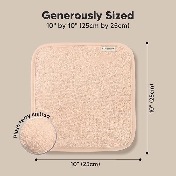- 6-Pack KeaBabies Baby Wash Cloths - Sized at 10"x10" (25x25cm), these ultra-soft, 500GSM premium viscose derived from bamboo wash cloths for babies are perfect baby bath essentials.