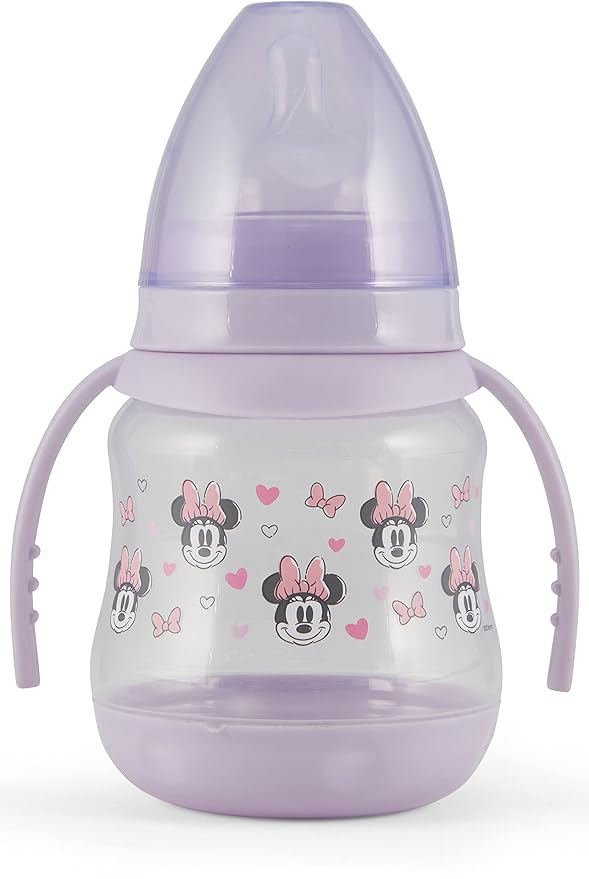 Disney 2 Pack 7 Ounce Baby Bottles with Character Prints and Colored Covers with Double Handle - BPA Free and Easy to Clean