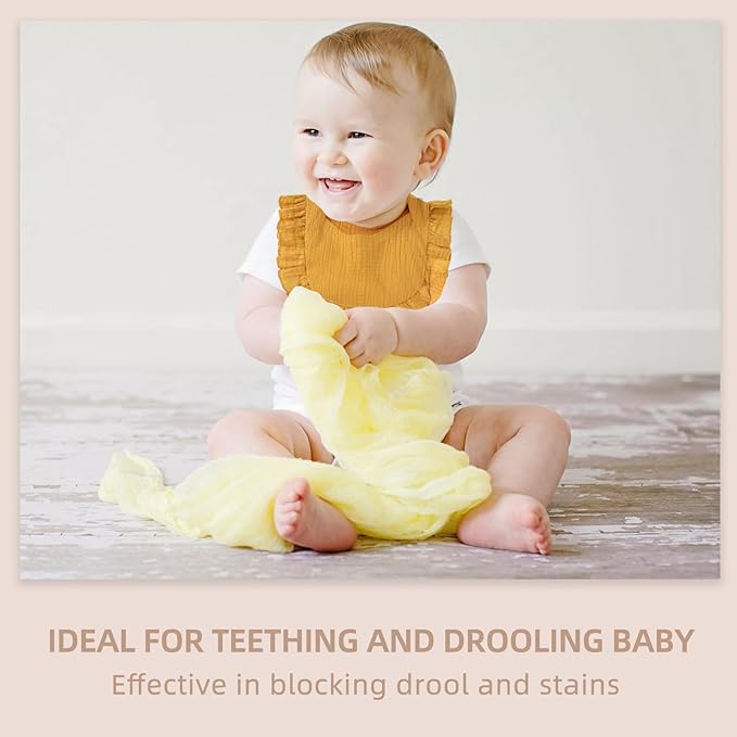- 100% Cotton: Our muslin bibs are made of 100% cotton and will not irritate the baby's skin. The soft and absorbent material can effectively block stains and drool, keeping clothes clean and dry. Muslin baby bibs are also big enough to cover baby clothes in case of spit-up.