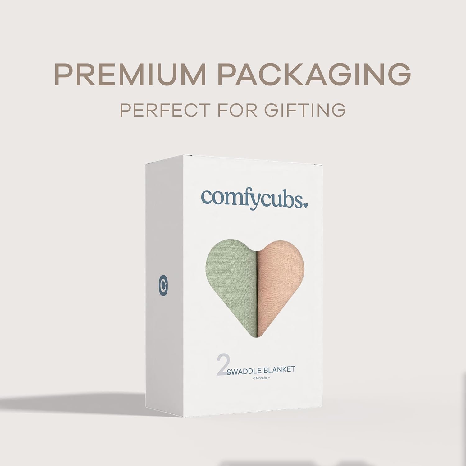 Comfy Cubs Muslin Swaddle Blankets Pack of 2 - 47 x 47 Inch Soft Cotton Baby Blanket Set, Large Multipurpose Wraps for Newborns - Self-Soothing Swaddles for Newborns - Sage & Blush