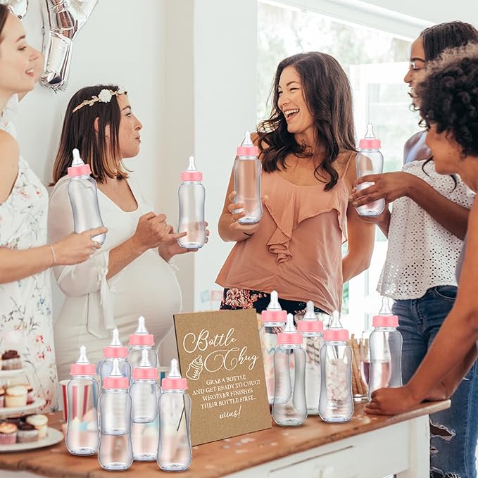 - Wide Application for Various Occasions: not just for baby showers, this baby bottles for baby shower game can be applied for various occasions such as birthdays, weddings, bridal showers, and many more; The package includes 1 game sign and 12 baby bottles, which are ideal for large gatherings
