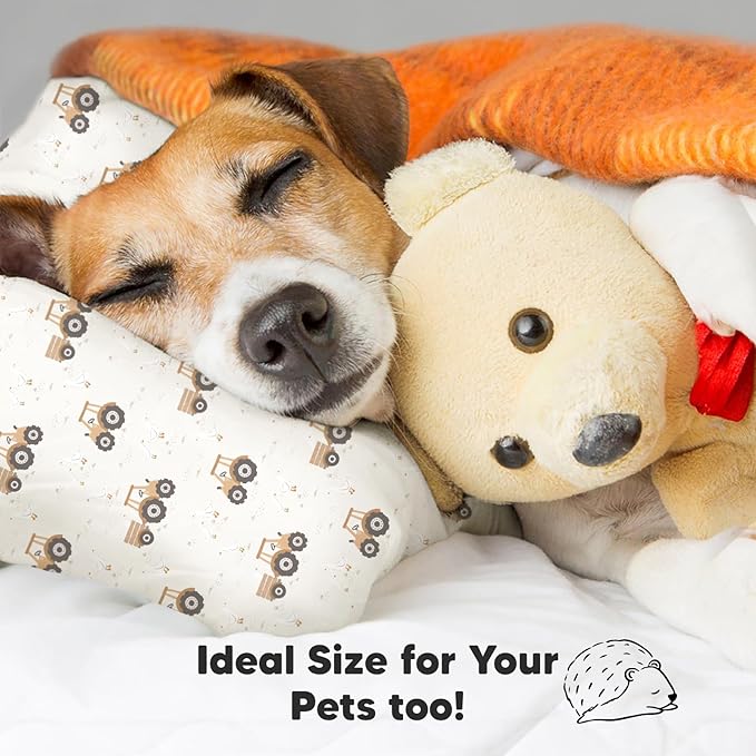 Toddler Pillow with Pillowcase - 13x18 My Little Dreamy Kids Travel Bed Pillows for Sleeping, Organic Cotton Small Pillowcase, Soft & Breathable, Machine Washable, Toddlers 2-5 Years Old (Tractor)