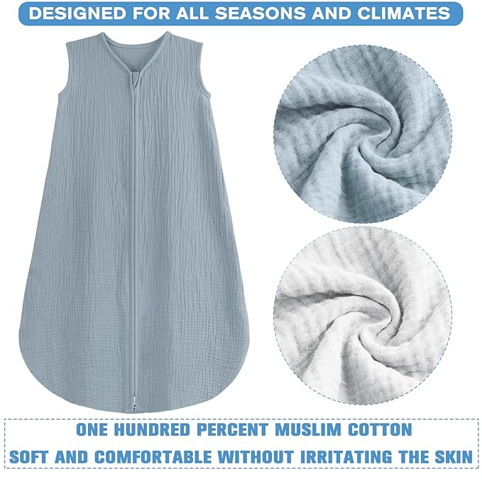 - 【Perfect for Sensitive Skin】Thin baby sleep sack section suitable for all seasons,No risk of overheating in babies- Made of 100% Organic Cotton Muslin. Super soft, cozy. machine washable. Perfect for babies with sensitive skin.