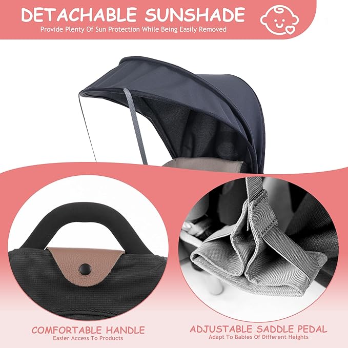 - AMPLE SPACE AND SAFETY: Our toddler carrier is equipped with an adjustable seat area, providing ample space for fast-growing babies. The advanced safety belt system protects the baby from falling, while the removable front and back pads provide additional comfort and easy cleaning advantages. The sun canopy provides effective sun protection for the baby, ensuring the comfort and safety of the baby during outdoor activities