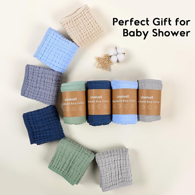 - Safety Comes First: Made from 100% premium quality cotton,Unnivoll muslin burp cloths is certified to meet Consumer Product Safety Commission (CPSC) guidelines, eliminate all potential risks and provide a soft, breathable, cloud like comfort for your little one. The natural muslin is also suitable for all skin types including sensitive and delicate skin, perfectly use on the face, hand and body.