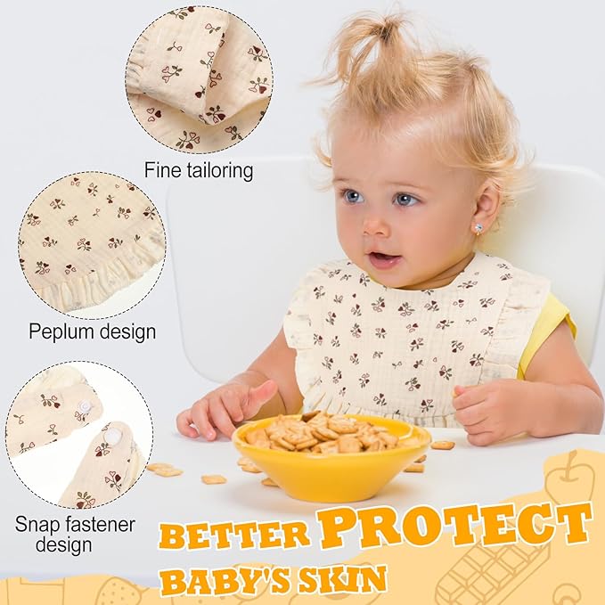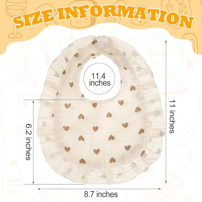 - Cute Ruffled Design: the muslin bandana bib is designed with a ruffled shape, the style is fresh and cute, there are solid colors and patterns, stylish and eye catching, letting your baby wear very beautifully; This bib can be matched with any style of clothing, very suitable for daily wear