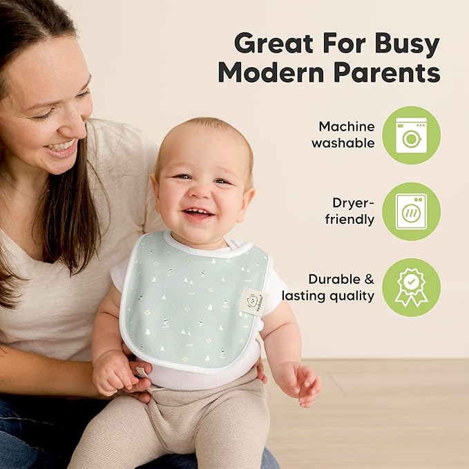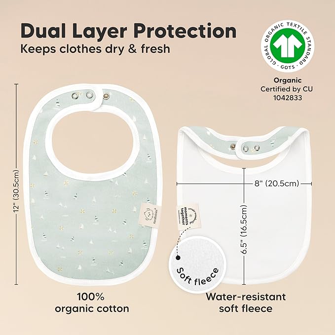 - Super Absorbent - Our organic baby boy and girl bibs are made with 100% organic cotton (GOTS-certified) and backed with water resistant fleece for added absorption. This dual layer design helps to keep your baby clean and fresh all day long. Suitable for newborns, infants, toddlers, heavy droolers and teething babies.