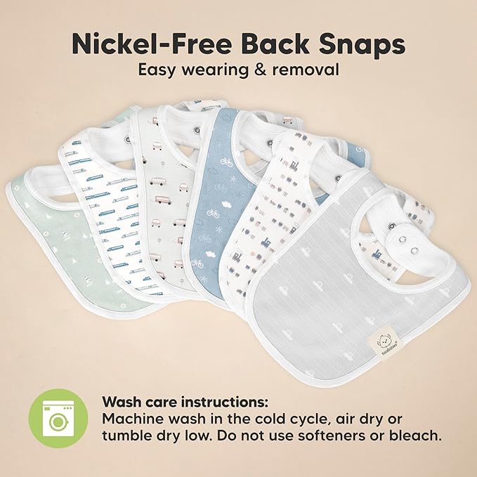 - 3 Adjustable Size With Soft Seams - With 2 sets of easily fasten nickel free snaps, you can adjust the girl and boy bibs according to your baby’s neckline. The soft wrapped organic cotton seams provide extra comfort for your baby and they won’t feel a thing while having the baby cotton bibs on. Suitable for newborn babies up to 24 months.