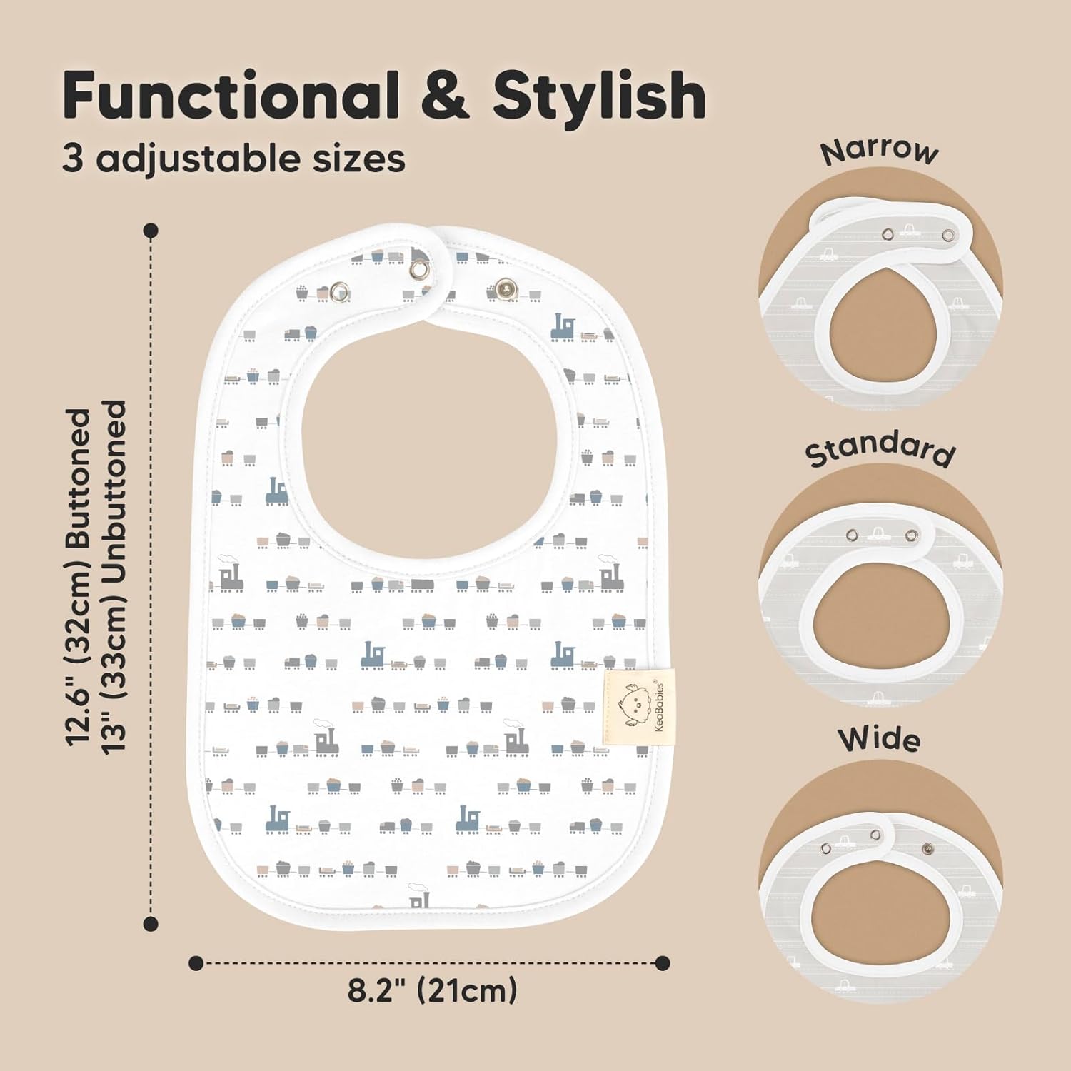 - 3 Adjustable Sizes With Soft Seams - With 2 sets of nickel-free snaps, you can adjust the girl and boy bibs according to your baby’s neckline. The soft-wrapped seams provide extra comfort for your baby while having the baby cloth bibs on.