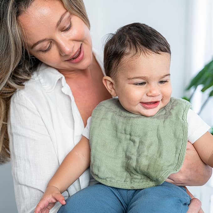 Comfy Cubs Muslin Bibs for Babies, Pack of 4 - Soft and Highly Absorbent, Feeding, Drool and Teething Bib, Adjustable Snaps - Stylish & Colorful Unisex Designs, Giftable Set - Sage