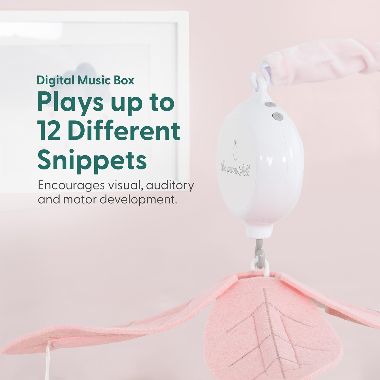 The Peanutshell Crib Mobile for Girls - Pink and White Musical Baby Crib Mobile with 12 Lullabies, Forest Baby Little Forest Nursery Decor