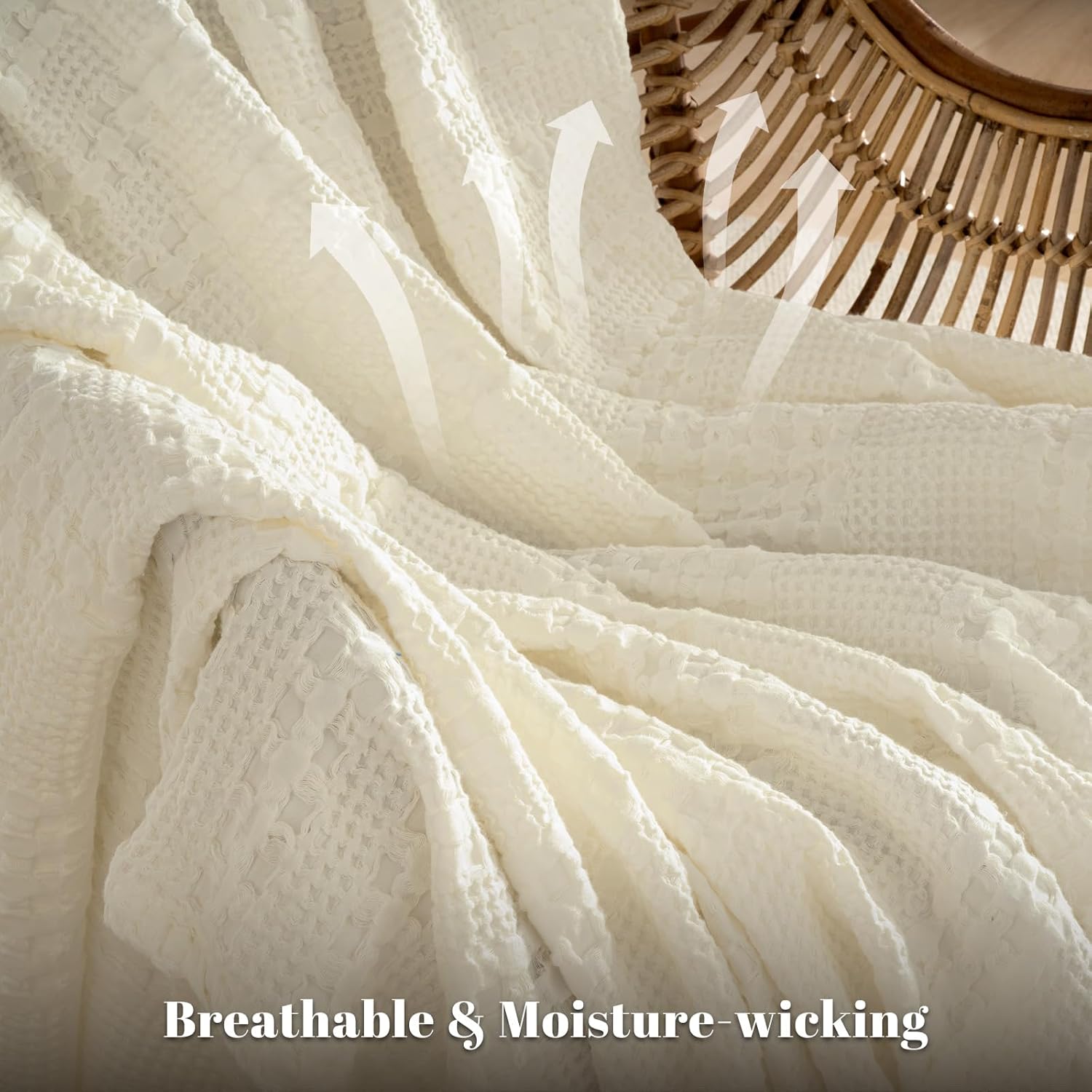- All Season Comfort: This waffle blanket can be used in all seasons,making itself a bedding essential in daily life. It is soft, breathable, moisture absorption and proper warm. It is perfect to be used in spring and summer to take off the chill but not cause you to sweat in hot days. It can also be usd in fall and winter as a nice added layer, on top of a down comforter in cold days.