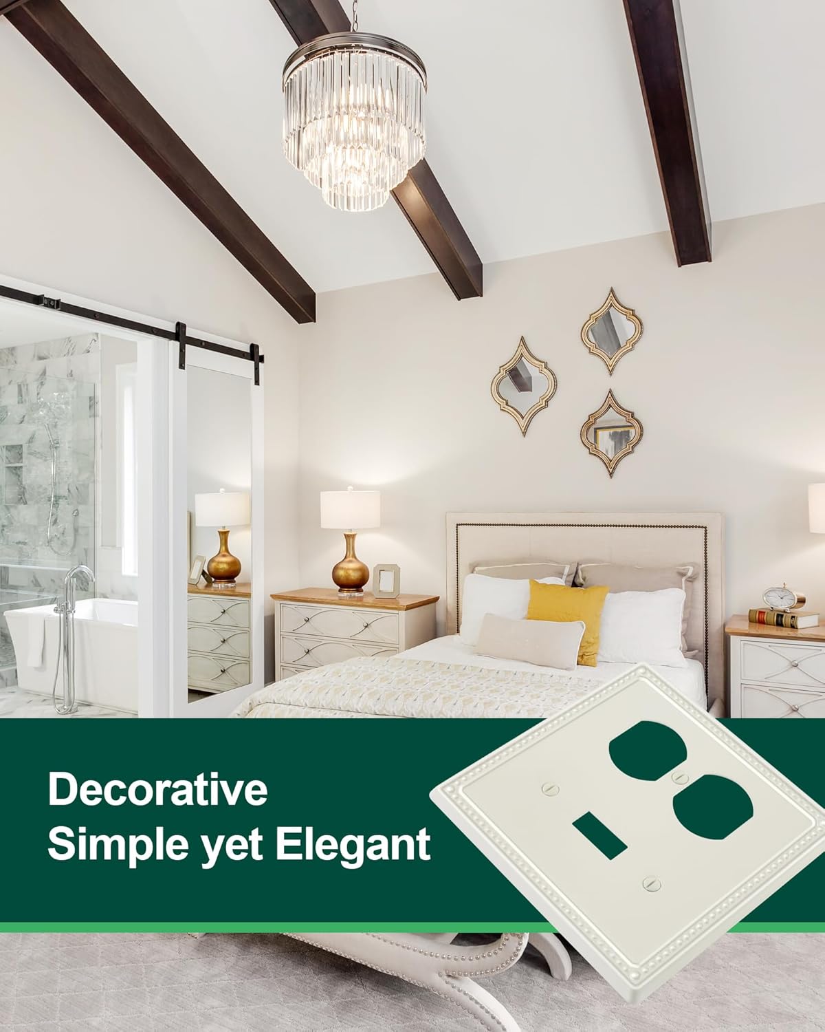 2-Pack Combo Toggle/Duplex Light Switch Cover Plate, Light Almond Metal Wall Outlet Cover Plate, Decorative Classic Beaded Wall Socket Receptacle Cover for Electrical Outlets, Light Switch