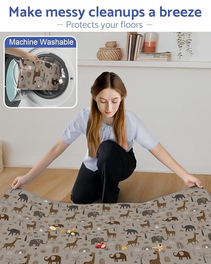 - Multiple Uses: Our splat mats are not only suitable for under high chairs, but also as tablecloths for playing and painting. The animal splat mat is foldable and lightweight, so you can take it with you on trips or outdoor picnics