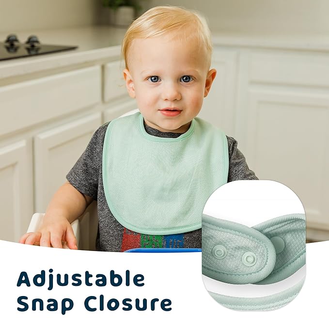 - DRY & COMFORTABLE: Keeps babies dry during drooling and teething. The soft outer layer quickly absorbs moisture, while the waterproof lining blocks leaks and protects clothes from messes.
