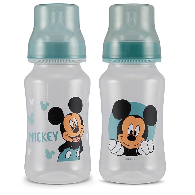 - Pack of 2 Baby Bottles: Feed your baby in style with our fun Disney-inspired infant bottles; the convenience and flexibility of feeding your newborn is even better with this cute Disney baby bottle set of 2.
