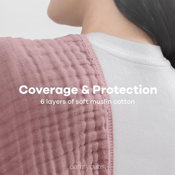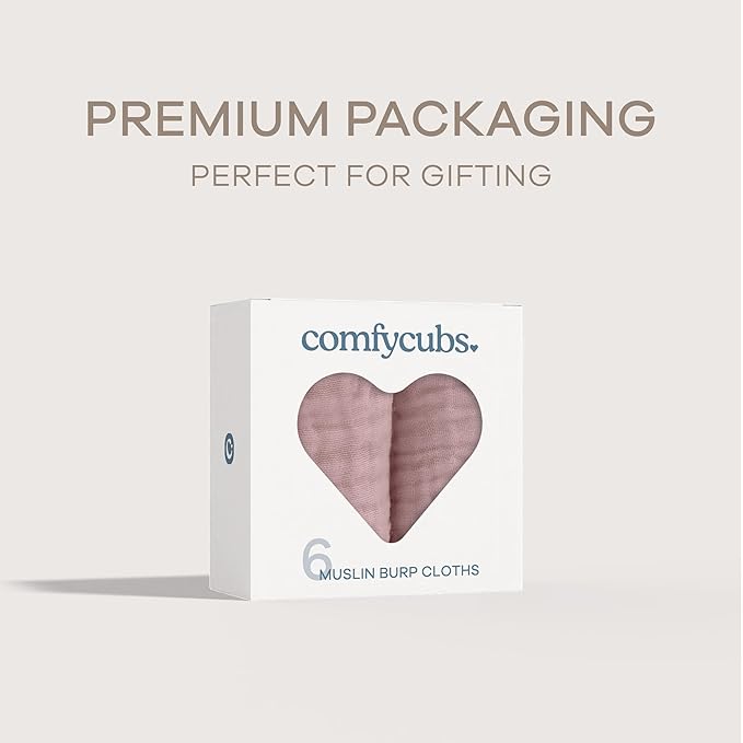 Comfy Cubs Muslin Burp Cloths 20" x 10", Pack of 6 - Large, 6-Layer, Ultra Absorbent 100% Cotton for Baby Drool and Messes - Soft, Safe & Gentle Baby Burp Cloths Set for Boys & Girls - Mauve