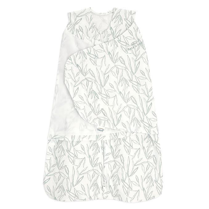 HALO 100% Cotton Sleepsack Swaddle, 3-Way Adjustable Wearable Blanket, TOG 1.5, Leaves, Small, 3-6 Months
