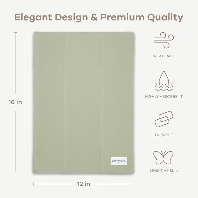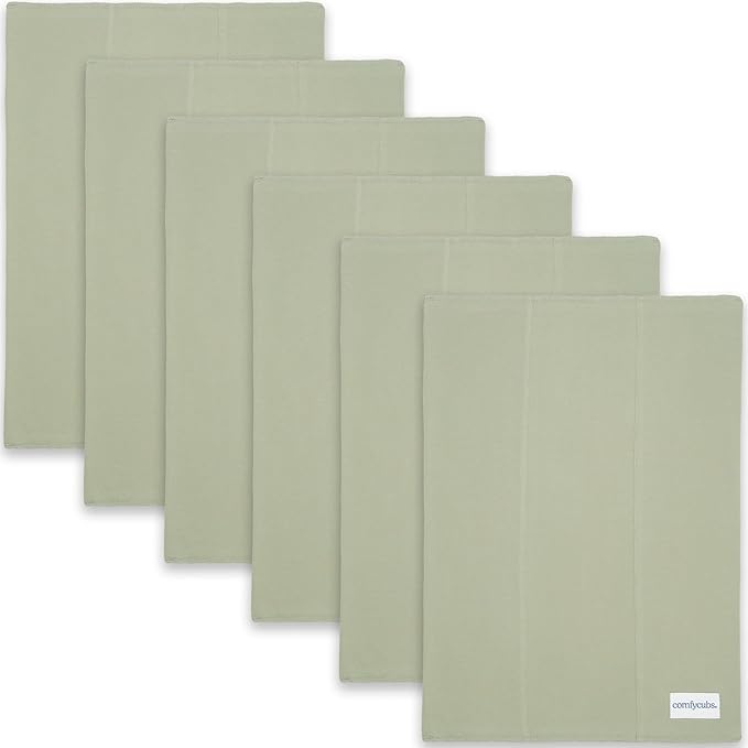 Comfy Cubs Baby Burp Cloths Set (Pack of 6) - Large, 6-Layer, Ultra Absorbent 100% Cotton for Infant Spit-Up, Drool, and Messes - Soft, Gentle, Thoughtful New Born Baby Gifts, Sage